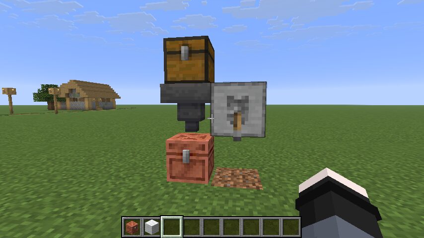 銅のチェストにアイテムを輸送することにします。ノーマルチェストには鉄ブロックが大量に。ゴーレムトラップを接続していると脳内補完してください。