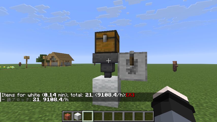 ホッパーは一秒にラグなしで毎秒2.5コアイテムを輸送できるので(by wiki)、一時間で9000コ輸送できる計算になります。あまり時間かけていないので、多少数はふれますが、かなり正確だといえるでしょう。時間をかければかけるほど値は正確になります。ただそこまで時間をかけて検証するのはめんどくさいという方はバニラで実装されたtickコマンドを使いましょう。